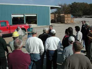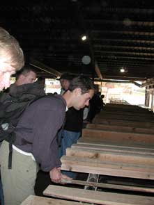 ![]() Bruce Moltzan points to R.O.B. defect in cut logs. |